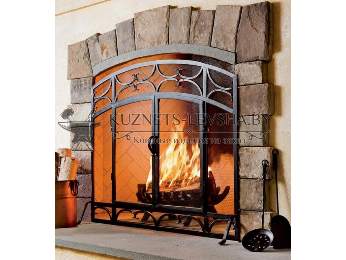 Каминный экран предназначен для защиты помещения от вылетающих угольков и искр. Также будет очень полезен, если у Вас есть маленькие дети или домашние питомцы. Кроме защитных функций экран является немаловажным элементом декора. Цвет и патина по желанию заказчика, огнеупорное покрытие предусмотрено.