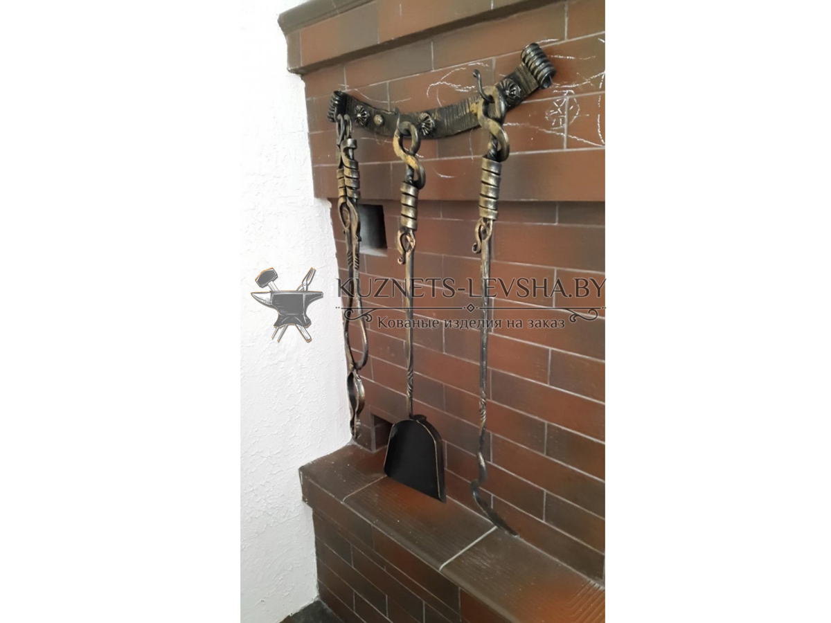 Набор состоит из 3 элементов: кочерга, совок и метелка. Все элементы вместе с подставкой выполнены в едином стиле и кроме своего основного назначения послужат немаловажной частью декора вашего камина.