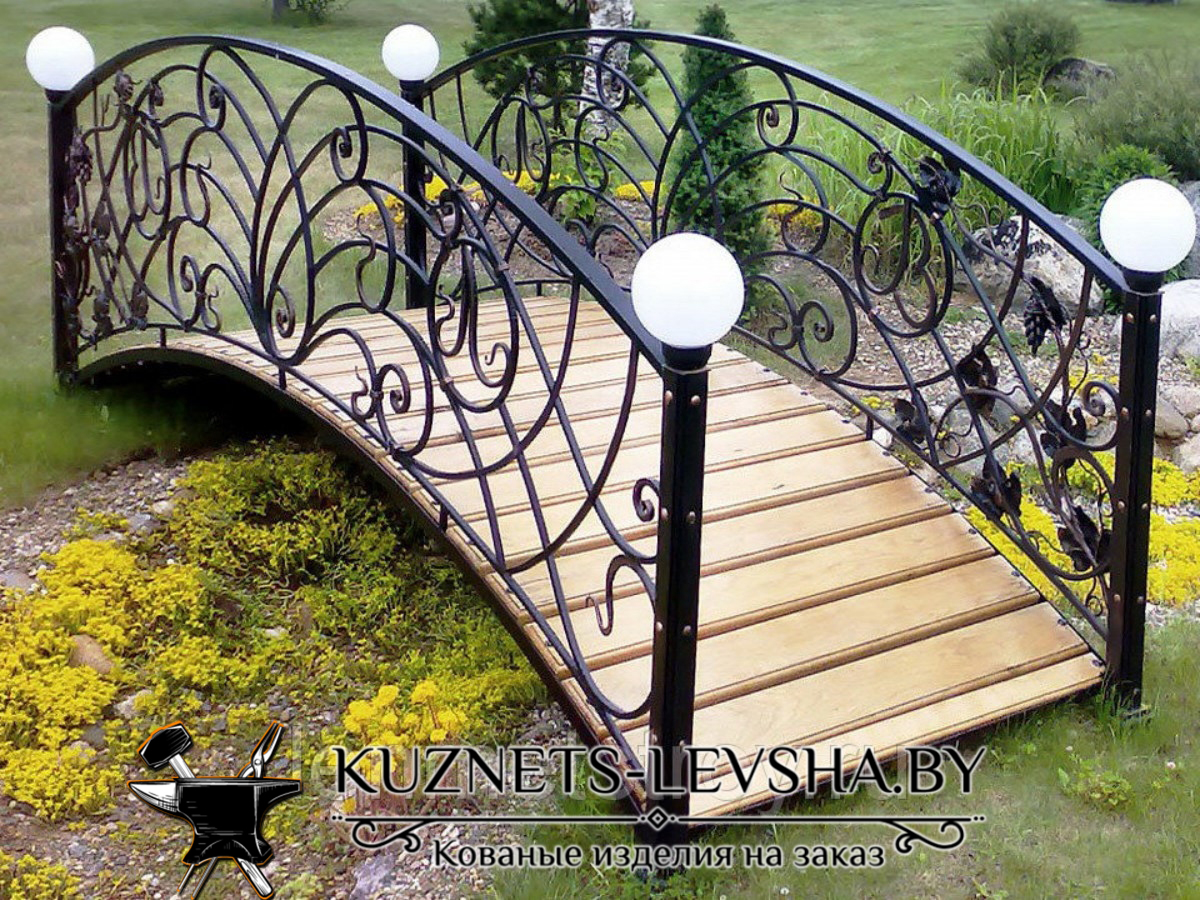 Такие замечательные элементы оформления парков, садов, скверов, усадеб, как кованые мосты и мостики всегда привносят в общий вид романтичные мотивы и настраивают всех, кто решил отдохнуть и расслабиться под сенью деревьев, на особенный лад. Ландшафтный дизайн, приобретший огромную популярность, предусматривает использование мостиков, выполненных методом ковки , и как функциональных изделий – для переходов через водоемы или овраги, и как украшений, замечательным образом гармонирующих с разнообразной растительностью и камнями.